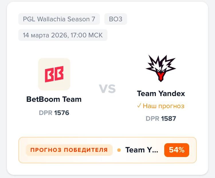 🔮 Победа Team Yandex(кэф: 1.87) ✅