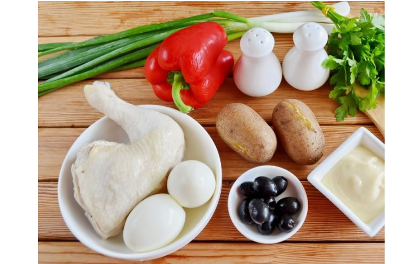 Салат «Женщина в красном» - это красивое и вкусное блюдо, которое может стать украшением праздничного стола. Его можно адаптировать под свой вкус: например, добавить маринованные грибы или заменить куриный окорочок на копчёный (на 4 порции): Ингредиенты: Приготовление: Состав салата можно отрегулировать на свой вкус, например, добавить маринованные грибы или заменить куриный окорочок на копчёный. Несколько идей, как украсить салат для праздничного стола: