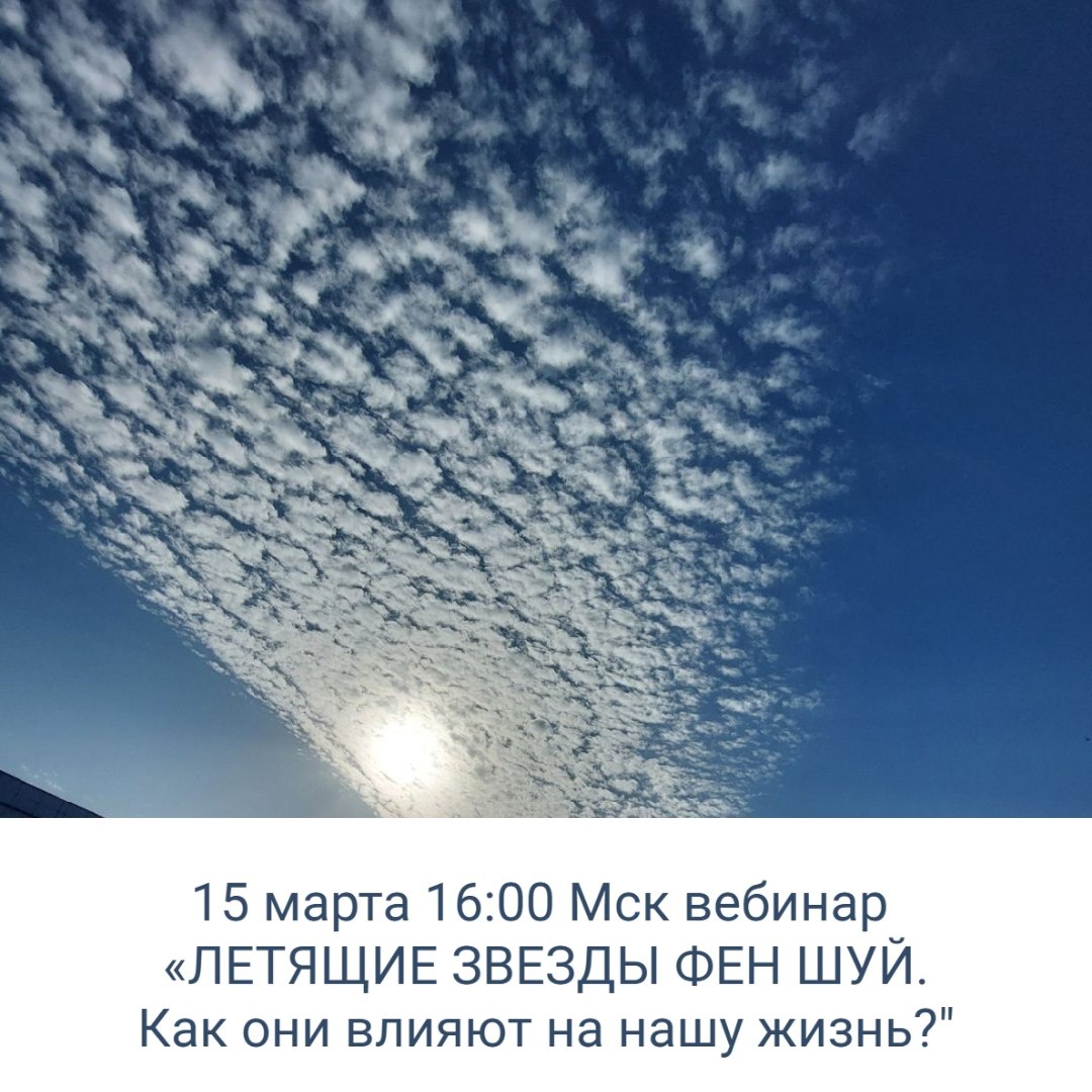 ! 15 марта в 16:00 Мск приглашаю вас на бесплатный вебинар на тему «ЛЕТЯЩИЕ ЗВЕЗДЫ ФЕН ШУЙ. Как они влияют на нашу жизнь?" Мы обсудим следующие вопросы: Что такое Летящие Звезды? Какие Звезды Благоприятны, а какие нет в текущем периоде. Как выбрать правильную Карту Летящих Звезд для вашей квартиры? Как быстро срабатывают Летящие Звезды натальной карты? Когда вы почувствуете на себе влияние Летящих Звезд года и месяца? Приходите, будет интересно. До встречи на вебинаре! Вход на вебинар по ссылке https://start.bizon365.ru/room/18812/letyshiezvez