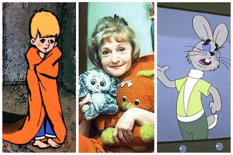 Рикки-Тикки-Тави из одноименного мультфильма 1965 года, мышонок из «Песенка мышонка», паровозик из «Паровозик из Ромашкова», Малыша из «Малыш и Карлсон», мальчик Тайге из мультфильма «Умка», заяц из «Ну, погоди!», Чебурашка, Элли из «Волшебника Изумрудного города», ежика из «Трям! Здравствуйте!», мамонтенок из «Мама для мамонтенка», енот из «Крошка Енот»… и еще сотни других мультфильмов