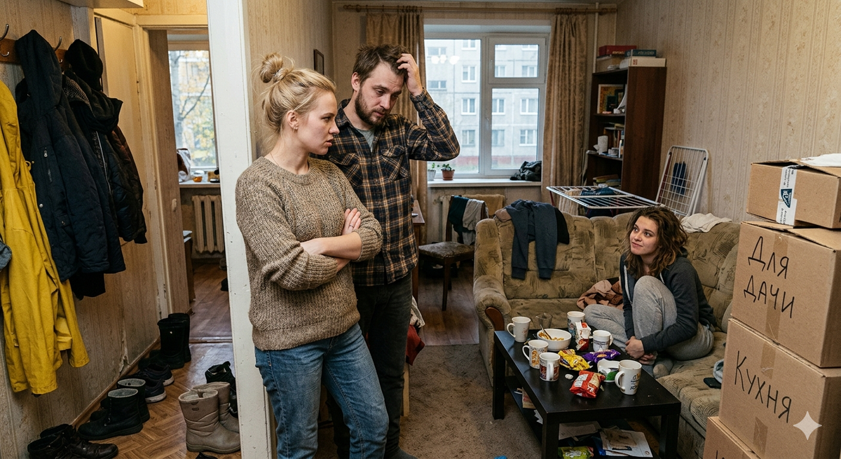 Анна смотрела, как чужая женщина уверенно берёт чашку, открывает шкаф. Всё внутри похолодело. Сергей молчал, потом выдавил: «Мы договаривались, ты уедешь, когда мы вернемся».