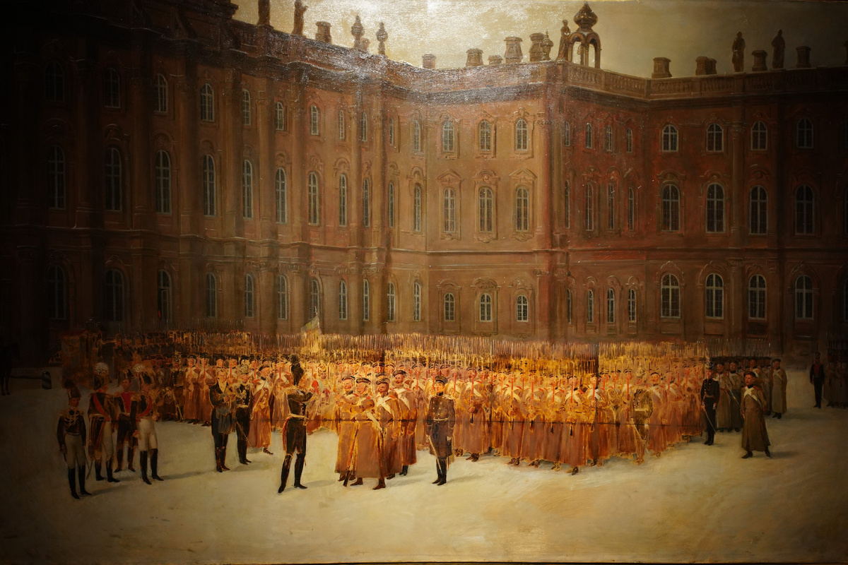 В это же время в Кавалергардском зале (№ 282, ныне часть Александровского зала) стала собираться знать. Люди прибывали нарядные, готовясь к торжественному молебну. Но праздник не состоялся.