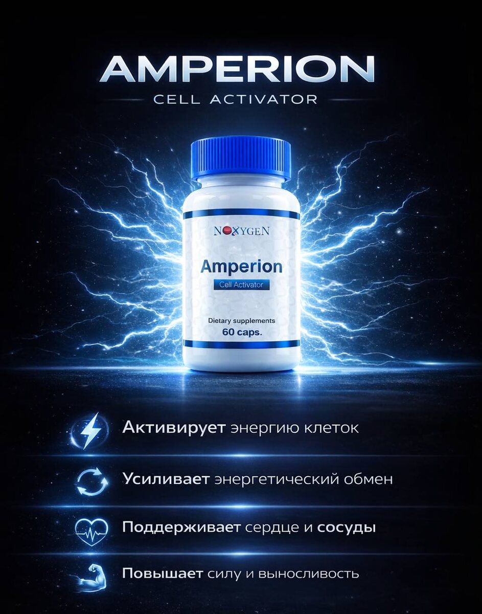 Представьте, что энергия в вашем теле работает на максимальной мощности, но без резких скачков, нервозности и истощения. Именно на это и нацелен Amperion — инновационная пищевая добавка, созданная для активации естественного метаболического потенциала организма. Это не просто стимулятор. Amperion работает на уровне клеток, помогая организму вырабатывать и использовать энергию эффективнее. Что вы получаете: 💊 Активизацию внутриклеточной энергии — больше ресурсов для тела и мозга 💊 Поддержку здоровья клеток и замедление процессов их старения 💊 Улучшение энергетического обмена в нейронах и снижение нейровоспаления 💊 Укрепление сердечно-сосудистой системы 💊 Рост физической силы и выносливости 💊 Стимуляцию регенеративных процессов 🧠 Больше ясности в голове. ⚡️ Больше энергии в теле. ❤️ Больше поддержки для здоровья. Amperion — это не кратковременный заряд, а системная поддержка вашего метаболизма. Если вы хотите чувствовать устойчивую энергию, концентрацию и силу каждый день, в