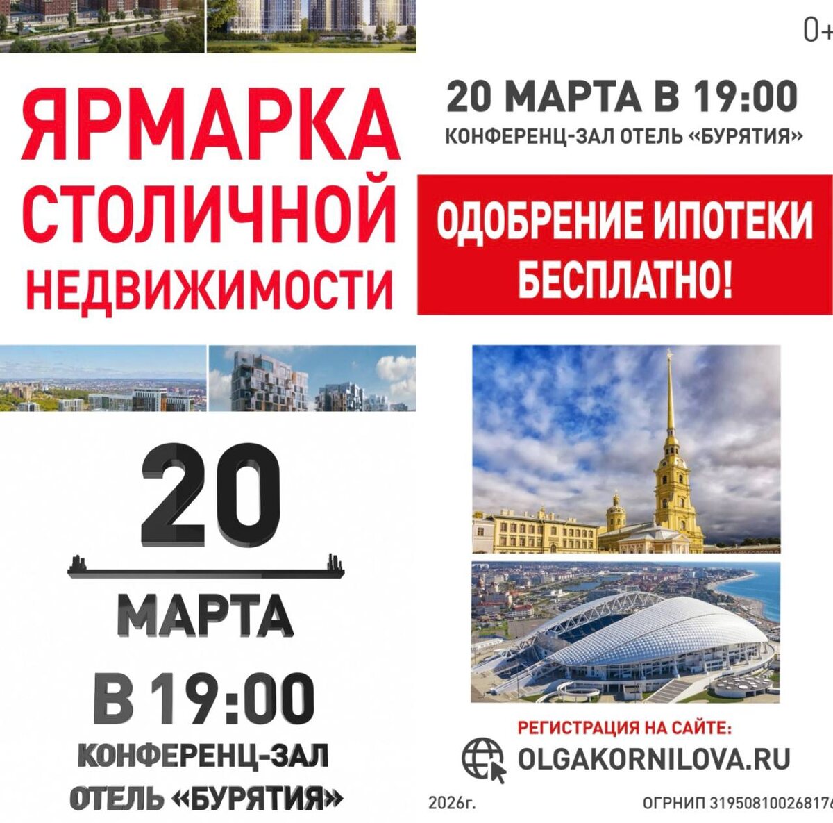 📌 20 марта, 19:00, конференц-зал гостиницы «Бурятия» В одном месте - федеральные эксперты, топовые застройщики и крупнейшие банки обсудят: - государственные и льготные ипотечные программы от крупнейших банков; - личные консультации и бесплатное одобрение ипотеки дополнительно: - специальные предложения от застройщиков - покупка без первоначального взноса - ставка 7% для всех категорий граждан