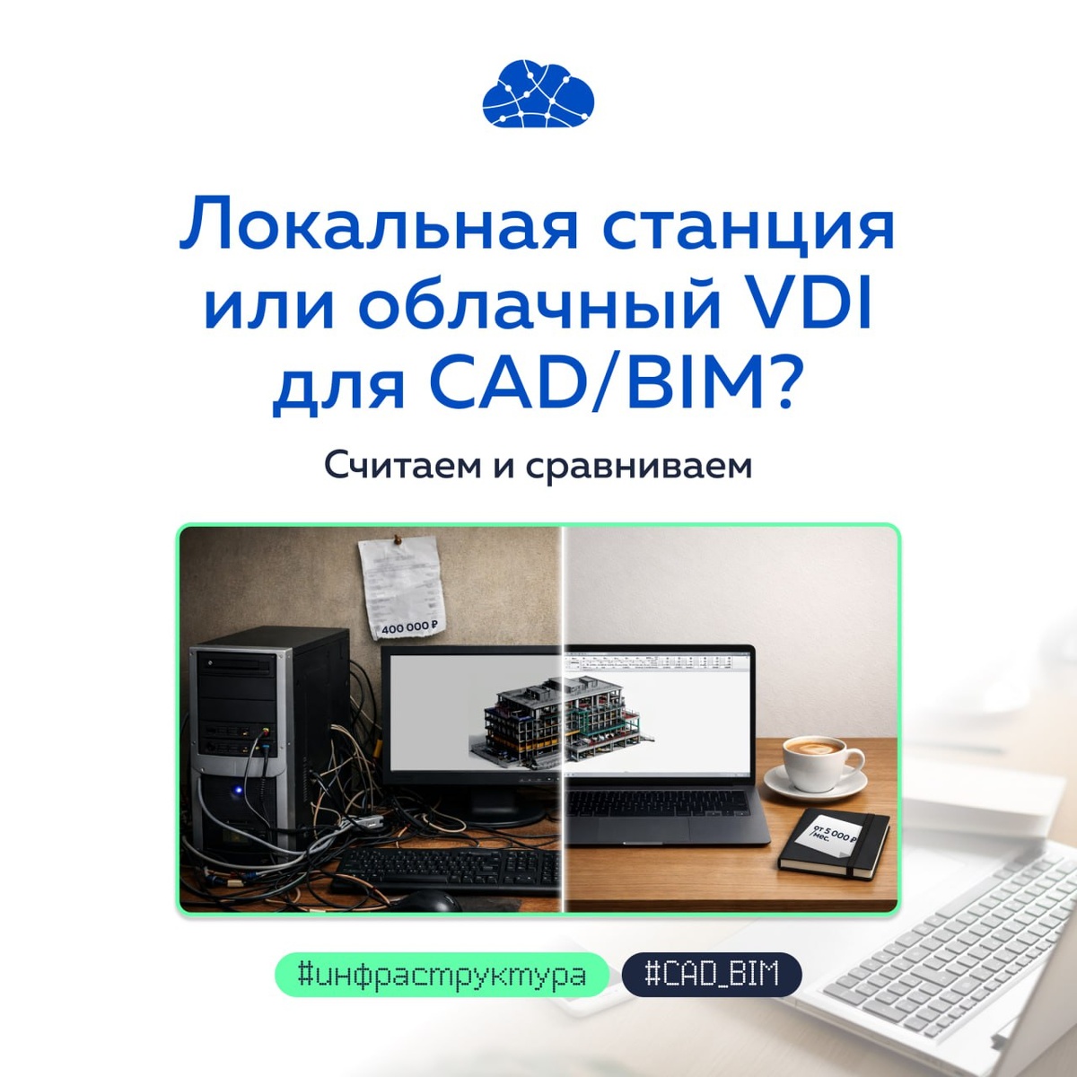 Но что выгоднее и удобнее: купить мощную рабочую станцию под стол каждому инженеру или развернуть облачные VDI? Собрали сравнение по пяти ключевым параметрам, детали — в карточках ⬆️ Спойлер: у каждого подхода есть свои сценарии, где он побеждает. Чтобы оценить, сколько сэкономит ваша команда, посмотрите наши готовые конфигурации для CAD/BIM.