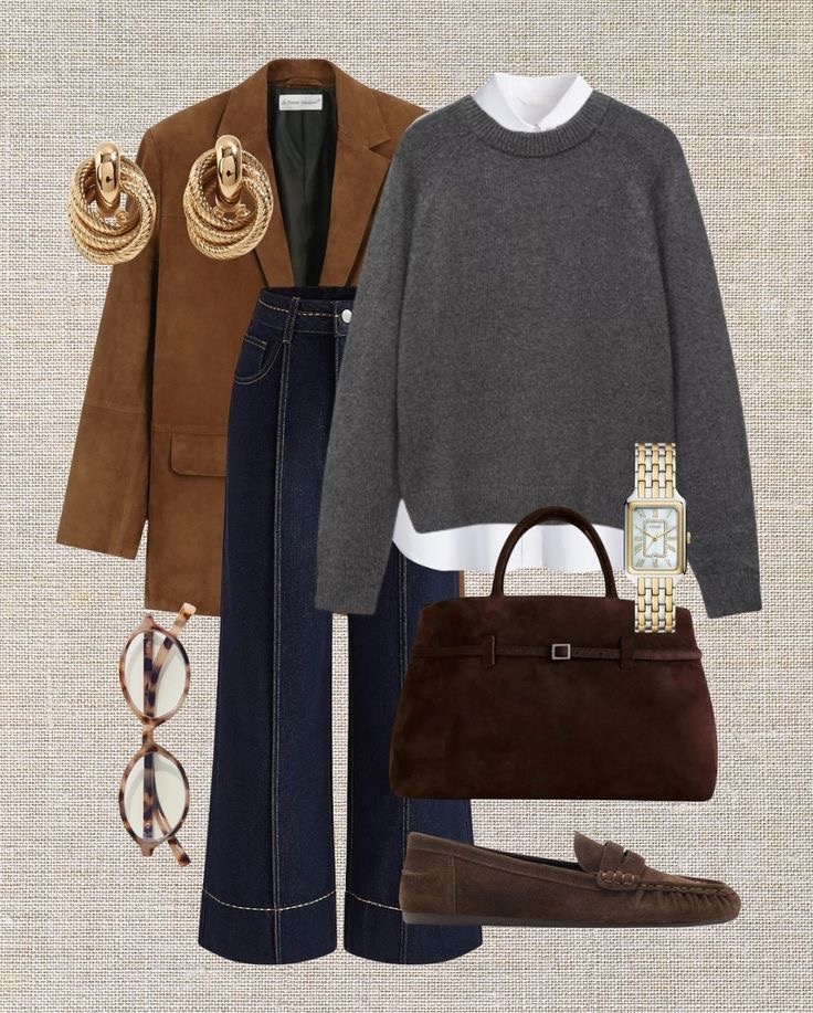 Выбирайте прямые джинсы или джинсы-бочки с элегантными складками у пояса. Пиджак должен быть свободного кроя, но с четкой линией плеча. Обувь — из мягкой кожи, на тонкой подошве, в спокойных оттенках.