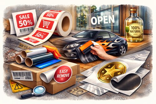В профессиональной печати подбор материала начинается с анализа условий эксплуатации. Наклейки для упаковки продуктов, маркировки складских товаров, брендирования витрин или автомобильной графики требуют разных технологических решений. Для каждой задачи используется конкретный тип самоклеящейся основы — бумага, виниловая пленка или специальные декоративные материалы. Ошибка на этапе выбора приводит к тому, что даже качественная печать не обеспечивает нужного результата.