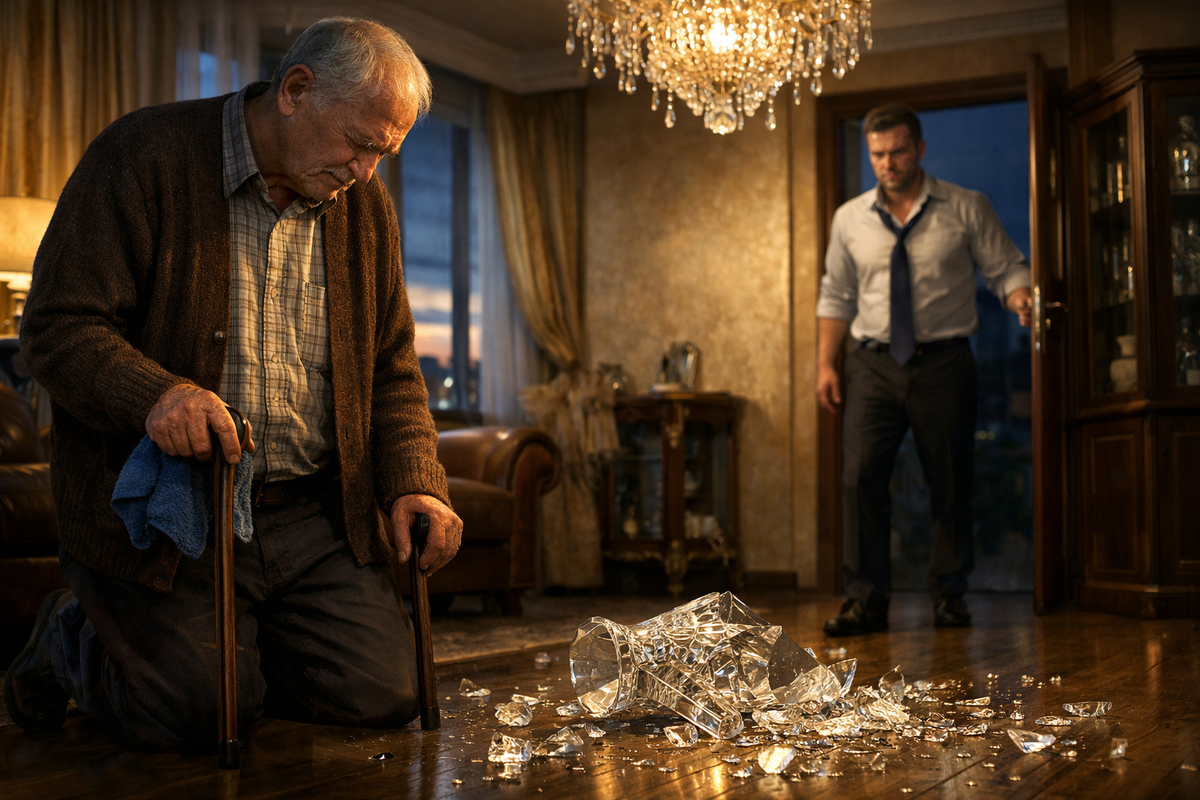 Хрустальная ваза упала на пол и разлетелась на сотни осколков. Звук был такой, будто выстрелили из ружья — резкий, оглушительный, неожиданный. Степан Петрович замер, держа в руке ту самую тряпку, которой только что вытирал пыль с полки. Он просто хотел помочь. Прибраться немного, пока сына нет дома. Но старая рука дрогнула, локоть задел тяжёлую вазу, и вот она уже лежит на дорогом ламинате, сверкая острыми гранями в свете хрустальной люстры.