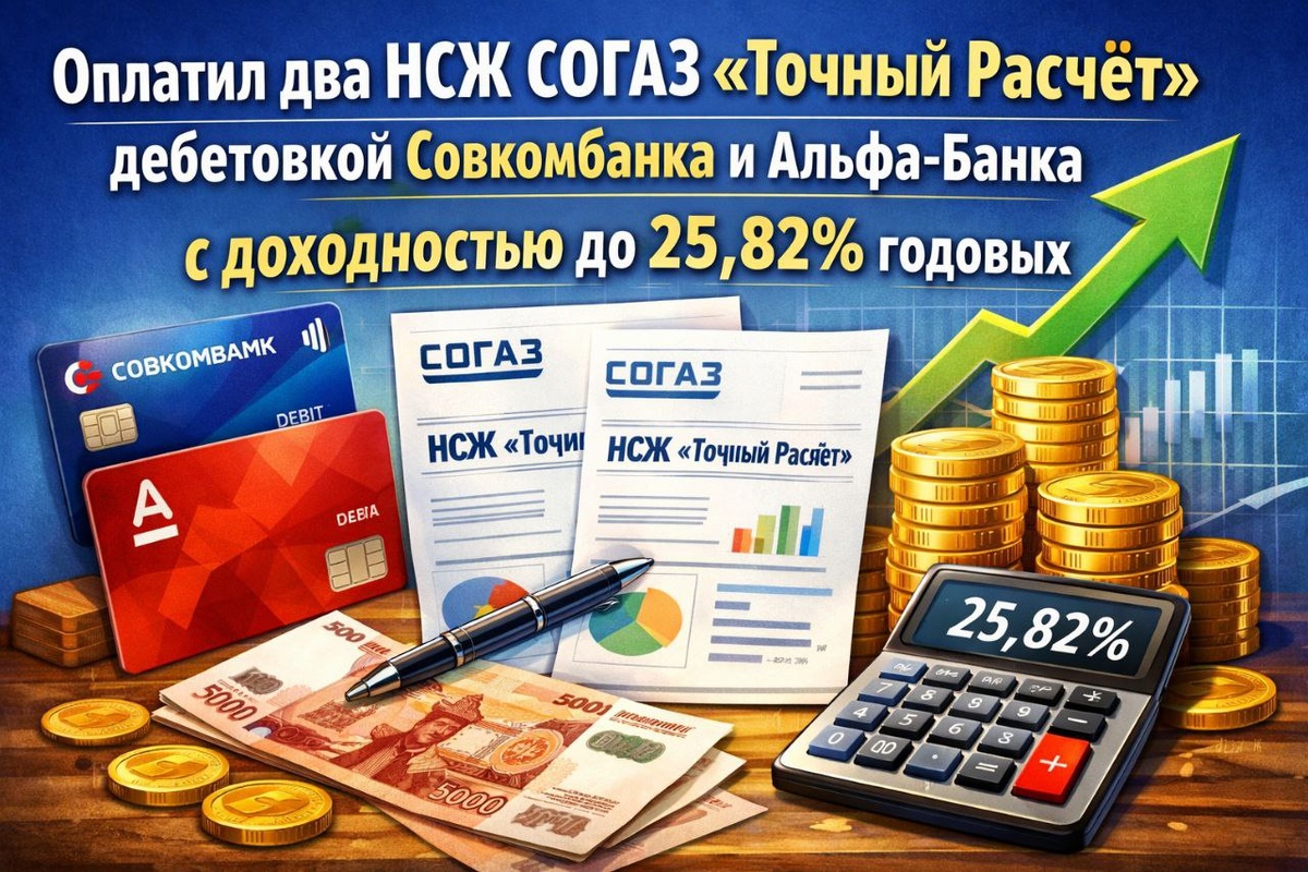 ✅ Оплатил два НСЖ «Точный Расчёт» по номеру карты по 100к₽ (МСС 8099) с доходностью до 25,82% годовых. Стремительно двигаюсь к блоку ПЛ в Совке.