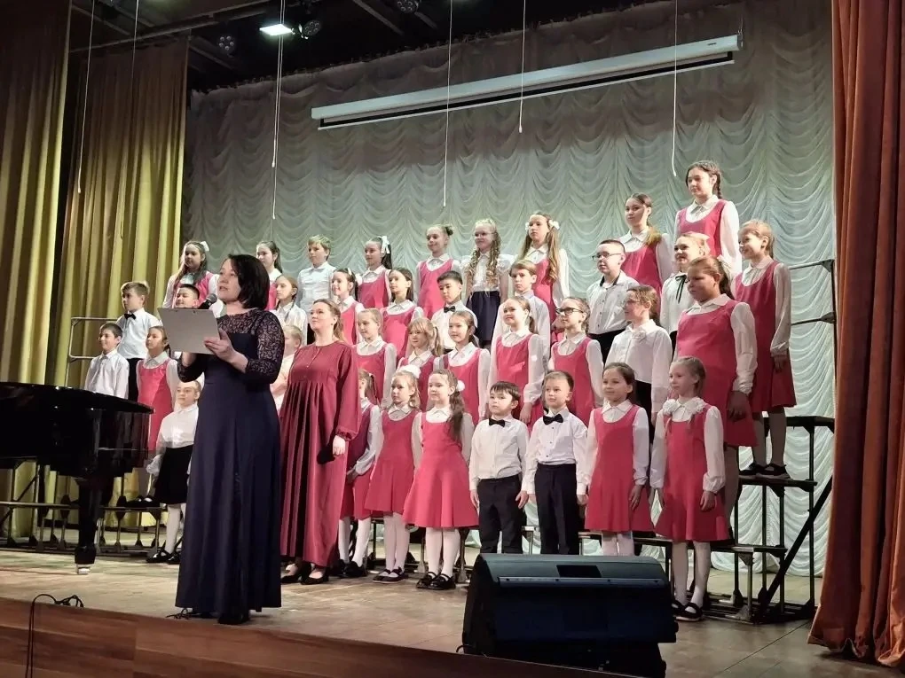 Завершил концерт номер сразу двух хоров - младших и старших классов. Два поколения замечательных хористов объединились, чтобы исполнить всеми любимую и такую актуальную сегодня песню «Вместе весело шагать». Она стала символом единства, дружбы и той радости, которую приносит совместное творчество.