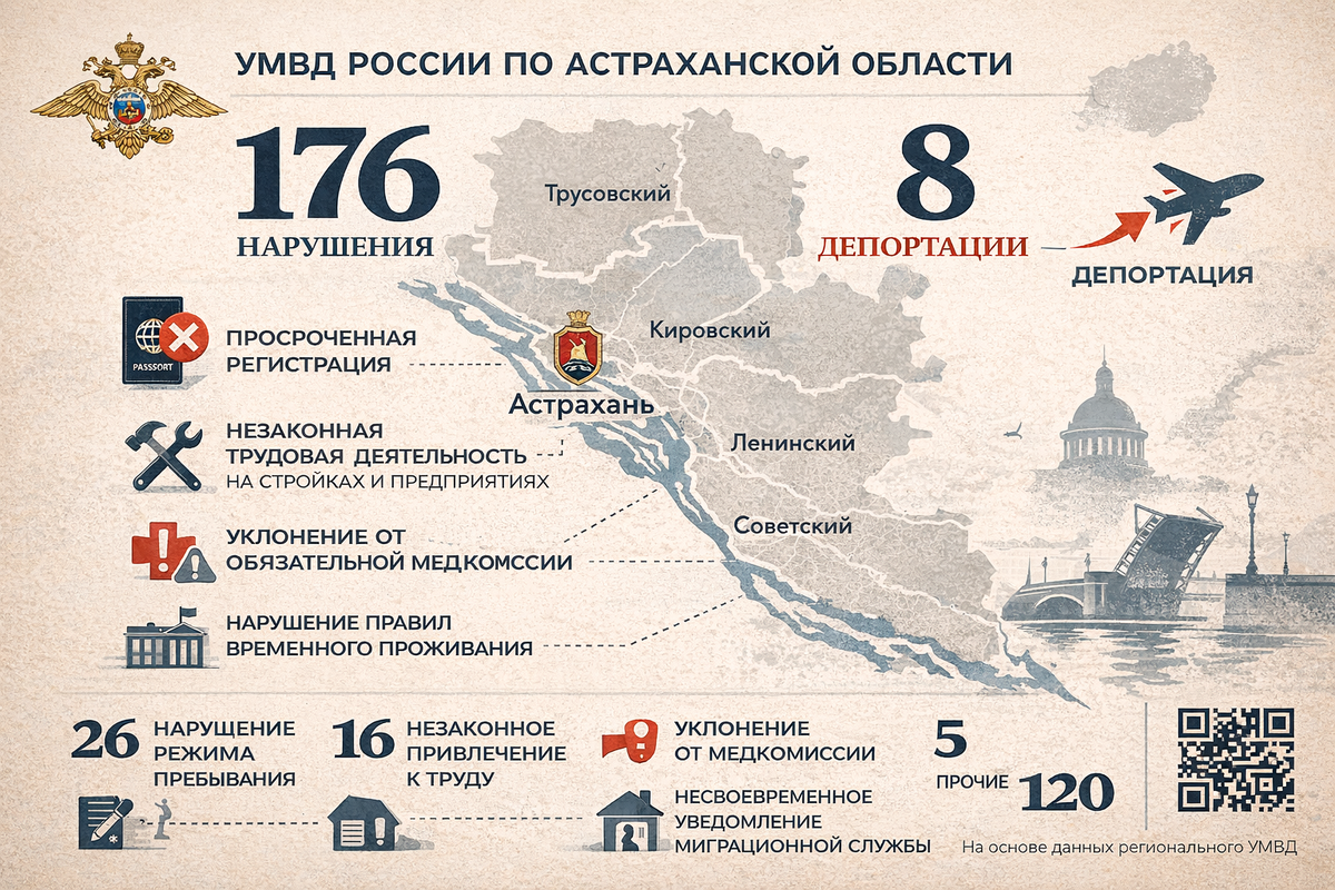 За неделю в Астраханской области полиция и миграционная служба зафиксировали 176 нарушений, 8 человек будет депортировано