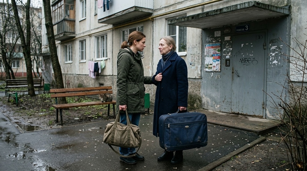 Та стояла с тёмно-синим чемоданом, слишком прямо, будто ждала не встречи, а приговора.