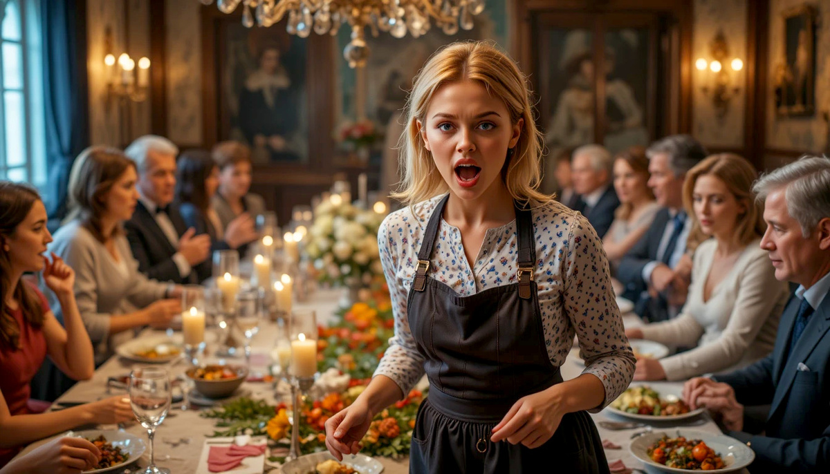 Музыка играла негромко, гости смеялись, кто-то поднимал бокалы. Огромный стол тянулся через весь зал, белая скатерть свисала почти до пола, свечи отражались в хрустале. Праздник выглядел идеально.