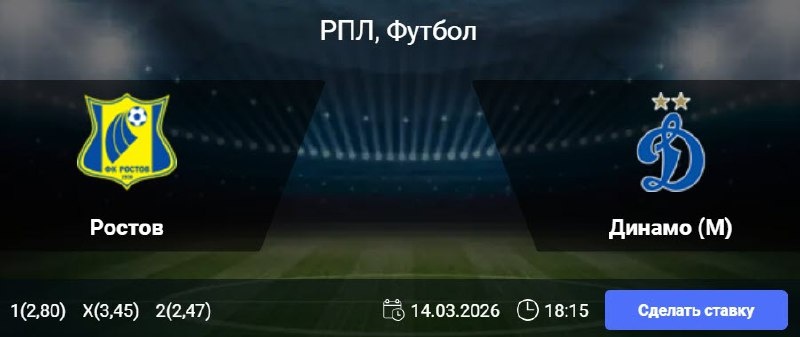 Ростов - Динамо Москва: РПЛ 21-й тур чемпионата России (14/03/26/18:15