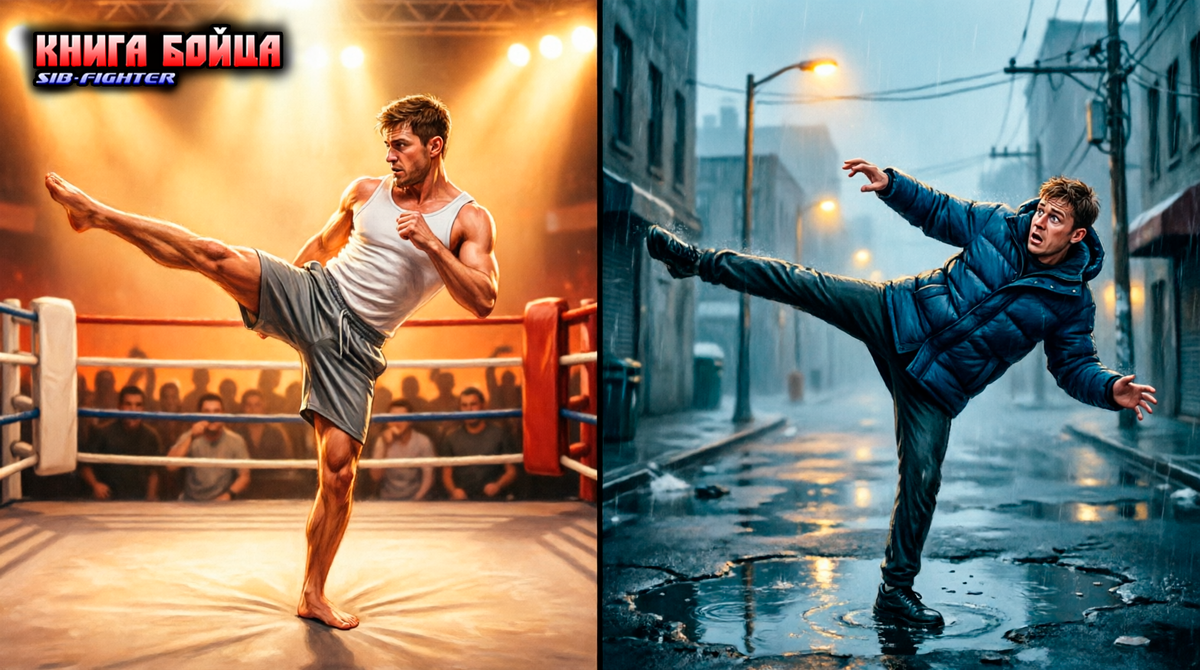Хай-кик в голову — визитная карточка многих бойцов. Эффектно, зрелищно, моментально поднимает рейтинг в глазах зрителей. Но если отбросить шоу и поговорить о реальной эффективности, возникает вопрос: а нужны ли эти удары там, где правила не работают? В спортивных единоборствах хай-кики — легальное оружие. Ими можно выиграть бой, отправить соперника в глухой нокаут, сорвать банк. При правильной технике и растяжке это мощный инструмент. Особенно эффективны высокие удары против: В ММА и кикбоксинге хай-кики остаются в арсенале топовых бойцов. Но там есть ринг, рефери и ограничения. В реальном конфликте высокий удар ногой — это лотерея, где на кону ваше здоровье. И вот почему. Риск потерять равновесие. На улице нет идеального ровного пола. Асфальт, бордюры, лужи, скользкая плитка — любой перепад высоты превращает хай-кик в опасное цирковое выступление. Зимняя одежда. Куртки, пуховики, шапки — всё это сковывает движения и делает высокий удар технически сложным. Даже если вы достали до голо