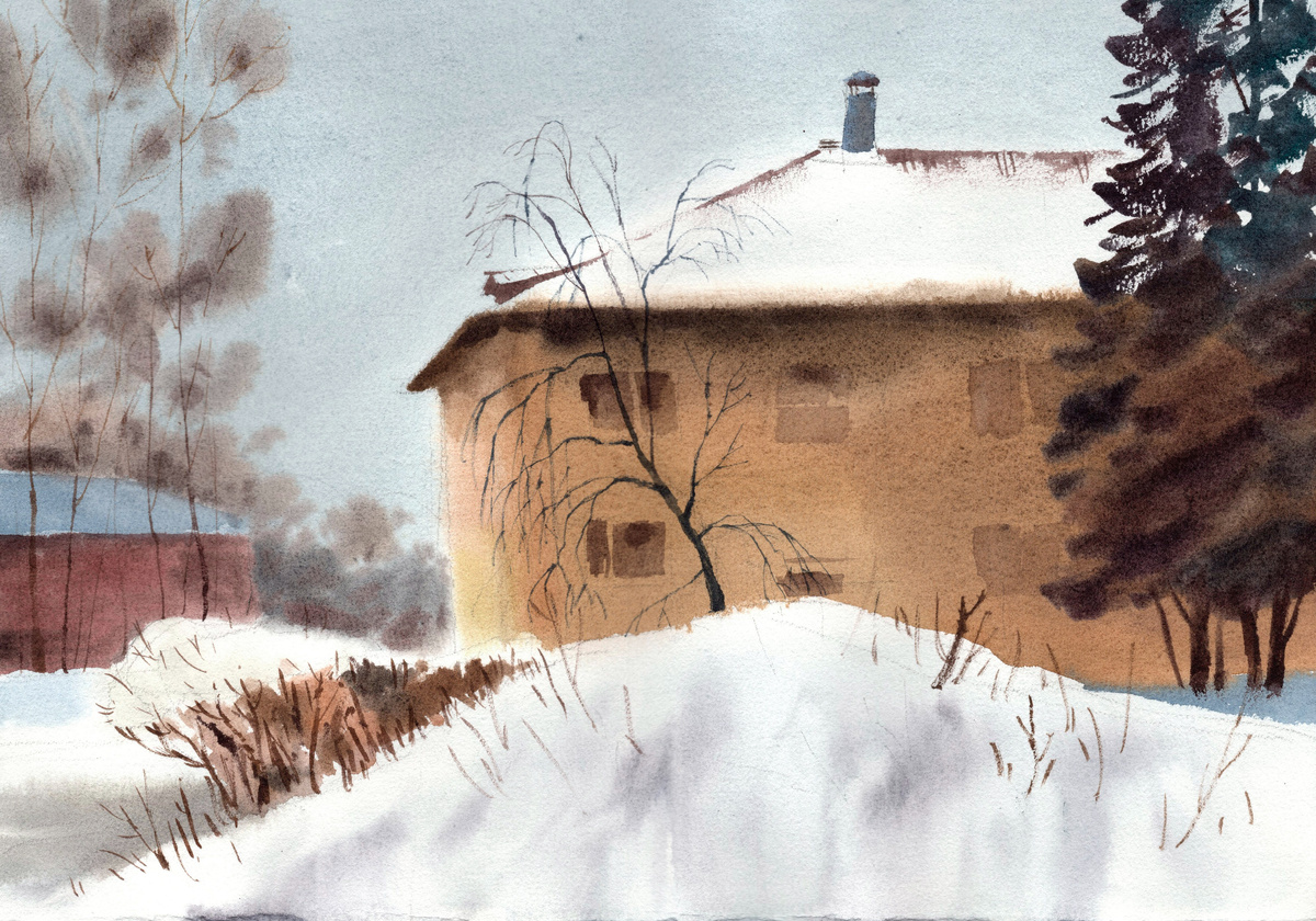 что-нибудь в блокноте во время совещаний (совещания длятся долго, а моё участие, чаще всего, не требуется) Одно время я приноровился рисовать старый купеческий дом, который видно из окна. Рисовал его раз за разом, с разными вариантами освещения, весь целиком или отдельные детали. Как-то раз во время перерыва я оставил блокнот на столе и пошёл налить себе кофе. И краем уха слышу, как двое коллег обсуждают мой рисунок. -Смотри, он рисует. -А знаешь что это? Это дом Мастера из "Мастера и Маргариты"! Точно, как он описан в книге! Понимаете, что получается? Смысл нарисованного в голове у смотрящего :) С другой стороны, сложно себе представить, что мастера рисуют, исходя из тех же импульсов, что и я. Если я рисую из желания решить чисто технические задачи (выбрать композицию получше, построить светотень по точней), то для профи всё это слишком