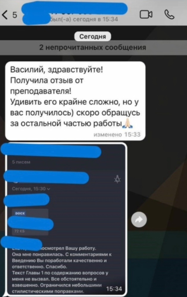 Знаете тот самый тип научных руководителей, которые досконально изучают вашу работу, придираясь к каждому слову и на раз-два вычисляя слабые места? В этом кейсе именно такой и был. ✅ Дано: дипломная работа. Студентка обратилась заранее, предоставила все данные. И сразу уточнила, что ее научный руководитель - человек с очень высоким уровнем требований, и что это может стать проблемой. Взял в работу и успокоил: за годы практики я работал с разными научруками и самыми изысканными их требованиями. 🤓 По ходу написания досконально проверялось все: За годы работы со студенческими работами разных уровней сложности появляется очень полезный навык. Ты начинаешь заранее понимать, что именно пристальнее всего будет проверять преподаватель. 🔎 Работу сдали. Ответ от преподавателя читайте на скриншоте. 👆 Это безумно приятный результат - в приятном смысле удивить того, кто строг и требователен. Но нам с клиенткой удалось. Отличная работа, я считаю. 😎 Хотите работу с минимумом замечаний? Пишите. НА