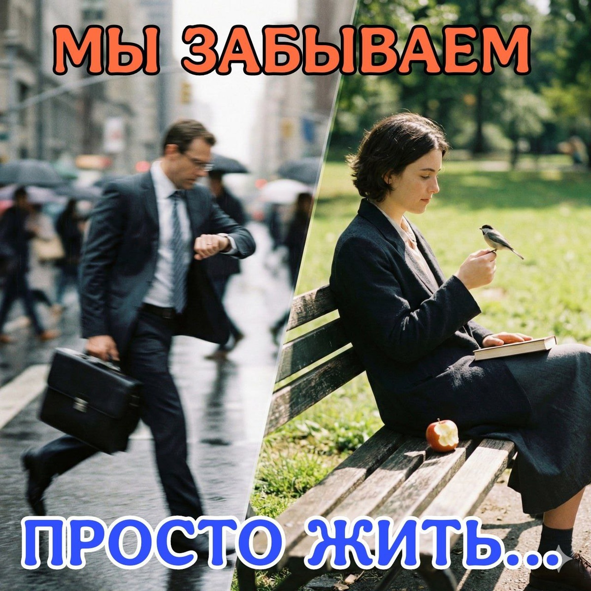 Просыпаемся от звонка будильника, который кажется врагом. Первым делом тянемся к телефону: проверить почту, сообщения, новости. Потом - бег: собраться, накормить семью, избежать пробок, успеть на встречу. День расписан по минутам: дедлайны, планерки, многозадачность, звонки. Мы ставим галочки, закрываем задачи, переходим по списку от «срочно» к «еще срочнее». А вечером, выдохшись, падаем на диван, чтобы… бесцельно листать ленту соцсетей, чувствуя фоновую тревогу и опустошение. Знакомо? Это не просто «тяжелый период». Это - хронический режим существования, в котором мы забыли самую простую и важную вещь: ПРОСТО ЖИТЬ! Когда жизнь становится списком дел. Мы освоили искусство функционирования, но разучились чувствовать. Мы превратили свою жизнь в проект с KPI: карьера, доход, ипотека, статус. В этом проекте есть всё: графики, цели, планы на год вперед. Но в нём часто нет места простым радостям, которые и составляют ткань настоящей жизни. Мы едим, но не чувствуем вкуса, потому что завтракае