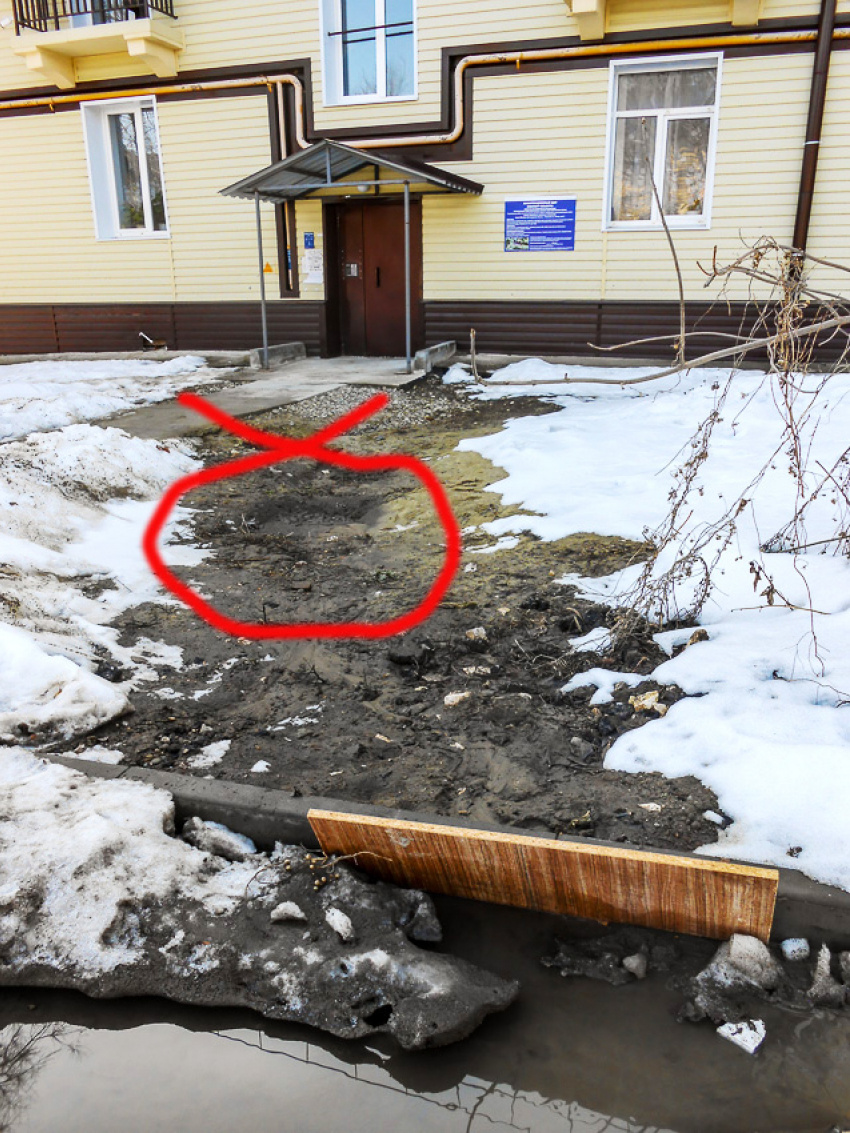 "На улице Титова , дом №1 в Камышине по весне вернулась прошлогодняя опасная для жителей обстановка. Вылезли все недоработки коммунальщиков. По-прежнему заливает подвал и местную "теплоцентраль" талой водой через странный провал у подъезда, - сообщают в редакцию встревоженные жители. Борьбу за нормальный ремонт "узкого места" в доме они ведут второй год.