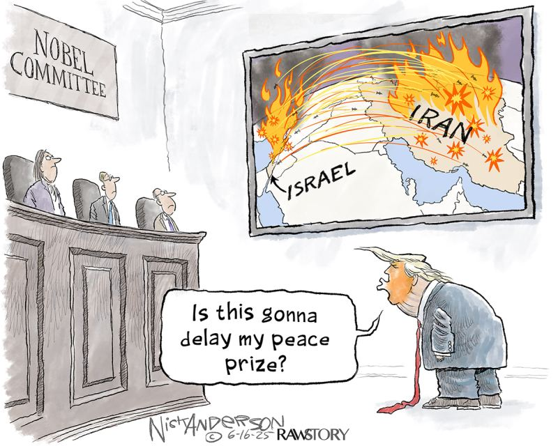 «Это задержит присуждение мне премии мира?» — обеспокоенно спрашивает Дональд Трамп