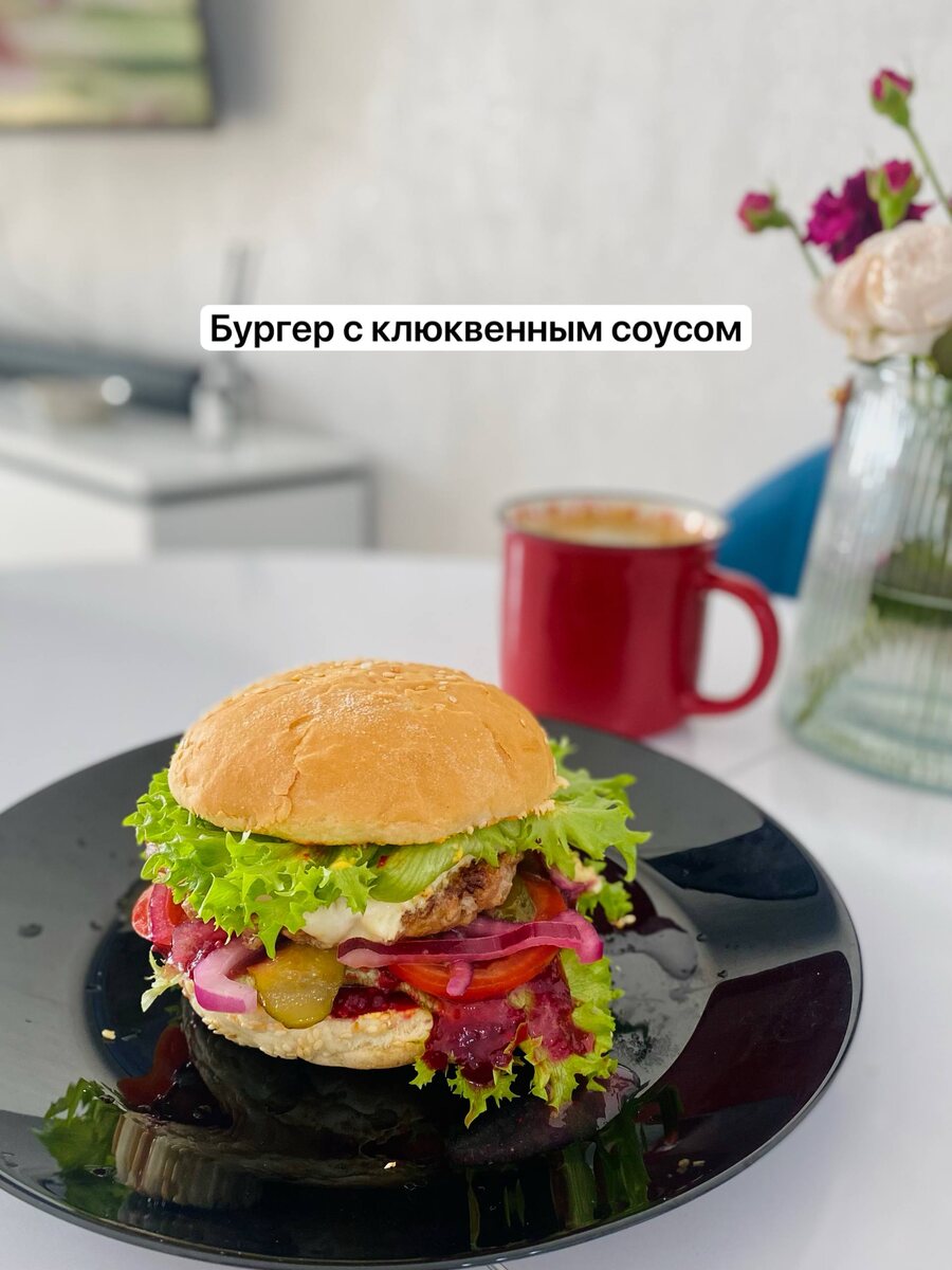 Подготовим соус: Клюкву томить с измельченным стручком Чили 🌶️ и сахаром (по вкусу). Когда клюква станет мягкой- размять прямо в сковороде и добавить кипятка (регулируй по своему вкусу кол-во воды). 1️⃣ Овощи порезать 2️⃣ Порезать лук и смешать с фаршем. Посолить и поперчить 3️⃣ Пожарить булки и котлету (не забудь добавить сыр, когда перевернешь) Рекомендация: жарь сначала на сильном огне около 2-х минут, переверни, уменьши огонь и жарь ещё 2 мин. Так котлета останется medium 👌 Собирай бургер и наслаждайся новыми гранями вкусов 😻