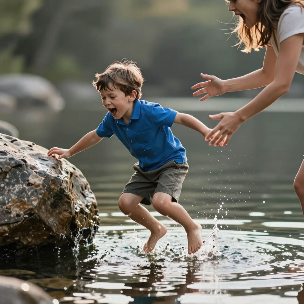 Ребёнок играл на камне в воде. Мама смотрела в телефон. А когда подняла глаза и закричала «Стой!», ребёнок испугался, поскользнулся и разбил губу. Кто виноват? Мама? Ребёнок? Или сам крик, который передал ребёнку страх быстрее, чем слова? В этой статье — о том, как наша тревога может навредить больше, чем любая опасность.
