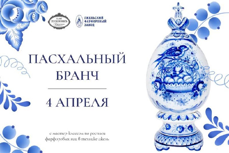 4 апреля «Кафе Пушкинъ у фонтана» приглашает на пасхальный бранч с мастер-классом по росписи фарфоровых яиц вместе с художником Гжельского
