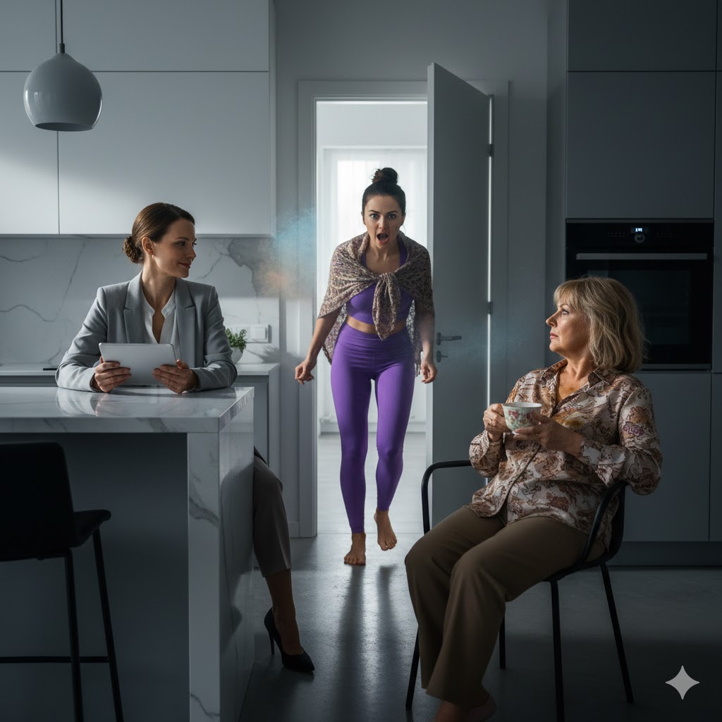 Спустя десять дней раздался звонок. Не в домофон, а сразу в дверь — свекровь явно проскочила с кем-то из соседей. Я открыла и замерла. Тамара Сергеевна выглядела так, будто она только что вышла из эпицентра торнадо. Прическа «волосок к волоску» превратилась в воронье гнездо, на кофточке красовалось пятно от яблочного пюре, а правый глаз подозрительно подергивался.
