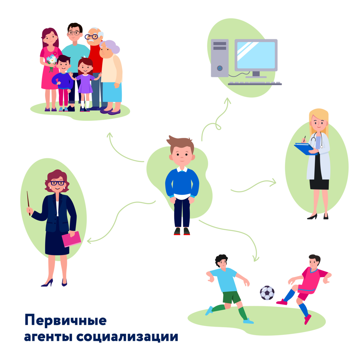 Агенты социализации — это люди или организации, которые помогают индивиду осваивать социальные роли и приобщаться к накопленному обществом опыту.