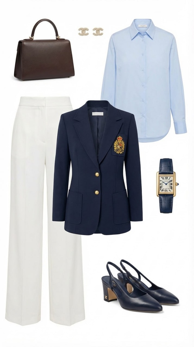 И этим якорем может стать стильный синий жакет с вышитым гербом. Он делает то, что сложно объяснить словами: собирает образ, добавляет уверенности и превращает простые вещи в продуманный стиль. Белые брюки, светлая рубашка, аккуратные серьги - и образ уже выглядит элегантно. Добавьте классическую сумку, часы и лаконичные туфли - и появляется тот самый эффект спокойной роскоши, когда всё выглядит дорого, но без показной вычурности. Такой пиджак легко вписывается в гардероб. Его можно надеть в офис, на встречу, в город или даже на ужин. С джинсами он станет более расслабленным, с брюками - строгим и деловым. А вышитый герб и золотые пуговицы добавляют характер и делают вещь запоминающейся. Это тот случай, когда не нужно много вещей, чтобы выглядеть стильно. Достаточно правильной базы и одной выразительной детали. Иногда лучший образ - это просто хороший жакет и уверенность в себе. ❤️ https://urs.by/zhaketi-verkhnyaya-odezhda/24-353-1 #жакетженский #пиджакженский #синийпиджак #жакет