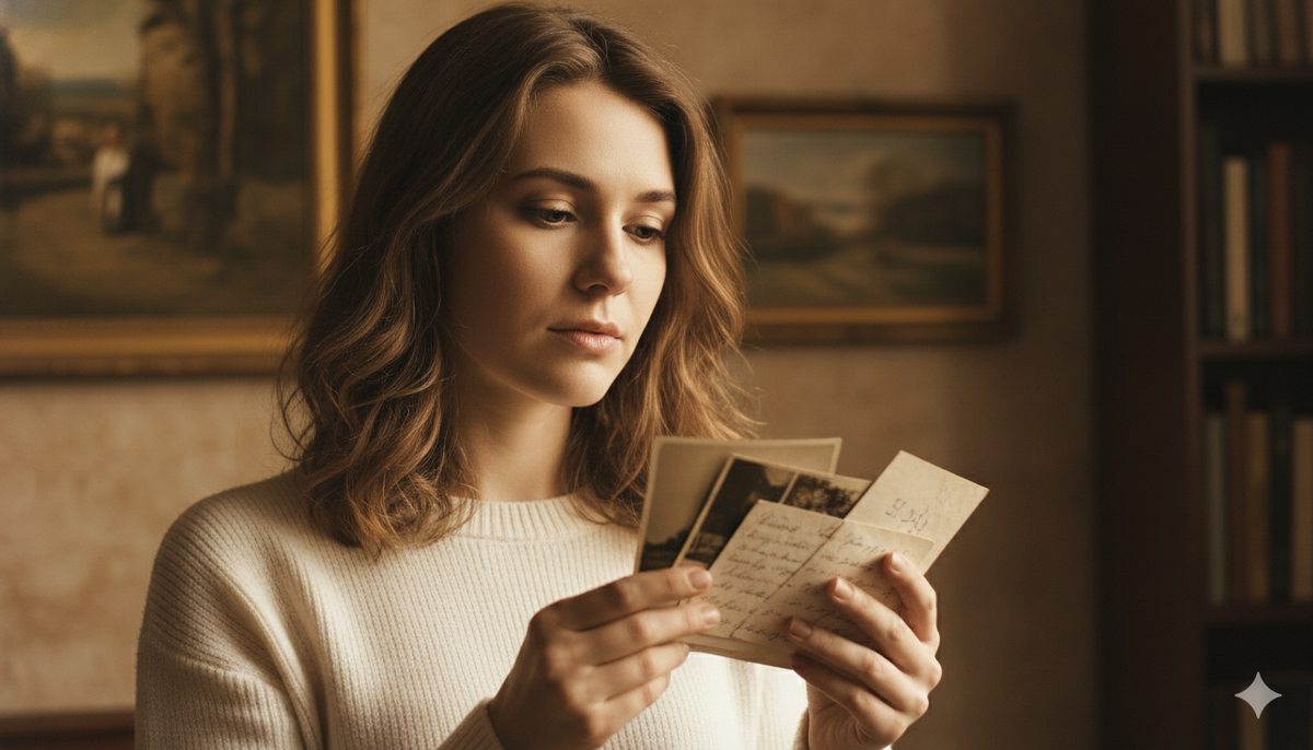 Алиса продолжала перебирать. Ещё фотографии, медальон, старые открытки. И на дне — плотный конверт. Запечатанный. С надписью: «Алисе. Вскрыть после моей смерти».