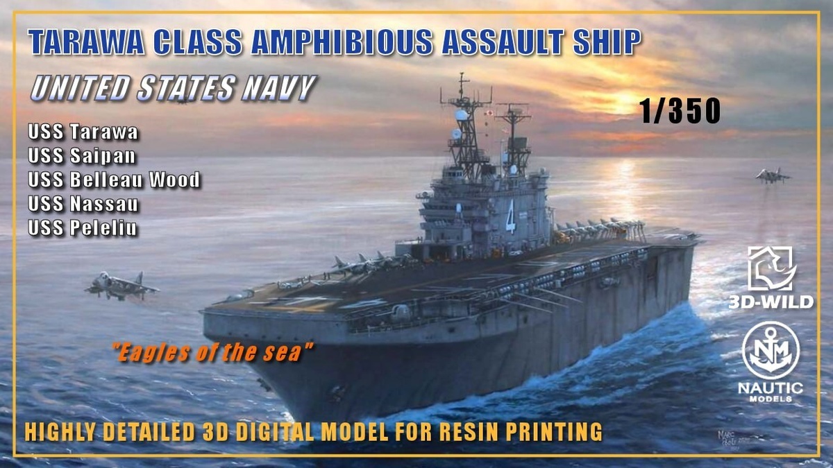 Американская 3D-Wild показала рендеры своей готовящейся к выпуску на 3D-принтере модели вертолетоносца класса "Тарава" в масштабе 1/350.