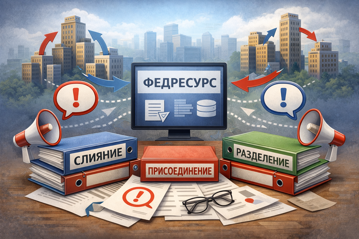 Реорганизация компании (слияние/присоединение/разделение) — это не только подача документов в ФНС, но и обязательные сообщения в Федресурсе (ЕФРСФДЮЛ). Если пропустить публикации или нарушить сроки, регистрирующий орган вправе отказать в регистрации из-за неисполнения обязанности уведомить кредиторов.