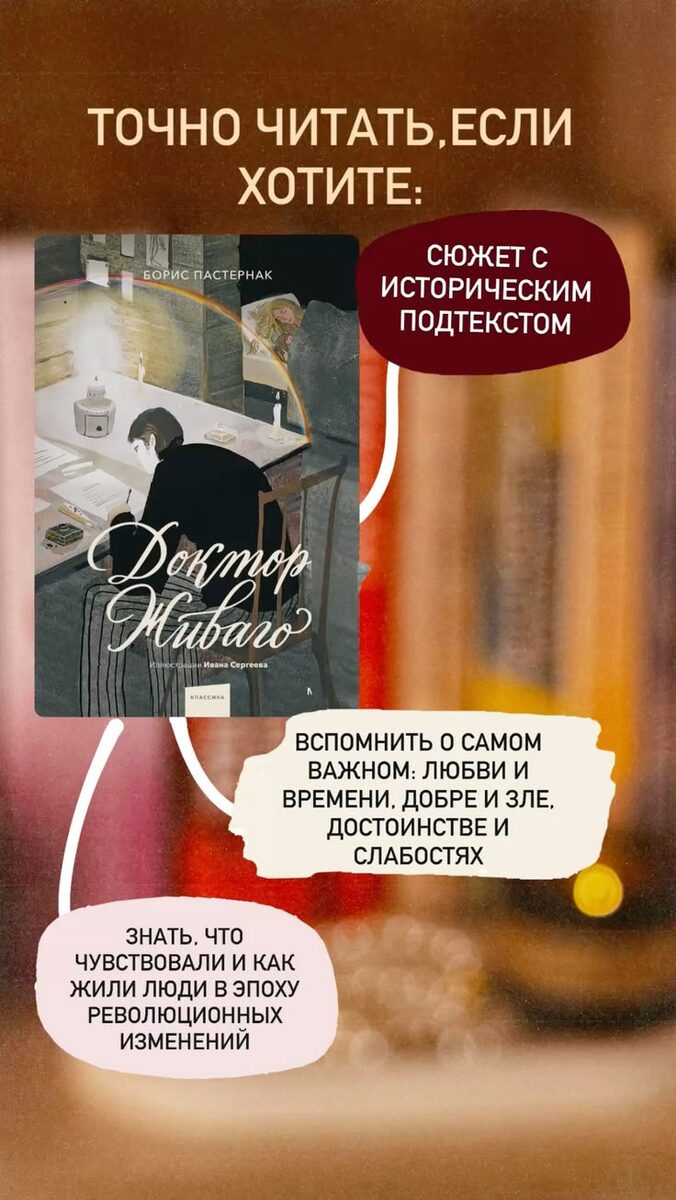 «Не читал, но осуждаю!» — эта фраза стала крылатой в Союзе писателей СССР и прочно закрепилась за романом Бориса Пастернака «Доктор Живаго». Книгу называли «предательской и антисоветской» — и, признаться, именно это подогревало мой интерес. Я взялась за чтение, ожидая чего‑то спорного и резкого, — но встретила нечто совсем иное. Начало романа далось мне непросто. В повествовании царил настоящий хаос: множество героев появлялись один за другим, и поначалу было совершенно непонятно, как они связаны между собой. Я несколько раз ловила себя на мысли: «Может, бросить?» Противоречивые чувства накатывали волнами: Но постепенно я втянулась — и уже не могла оторваться. Многослойность романа, которая сначала отталкивала, в итоге заворожила меня. Если бы меня попросили дать краткую характеристику, я бы сказала: «Доктор Живаго» — это книга обо всём сразу: Это не просто история одного человека. Это мозаика судеб, в которой отражается целая эпоха. Юрий Живаго — обычный человек, который пытается сохр