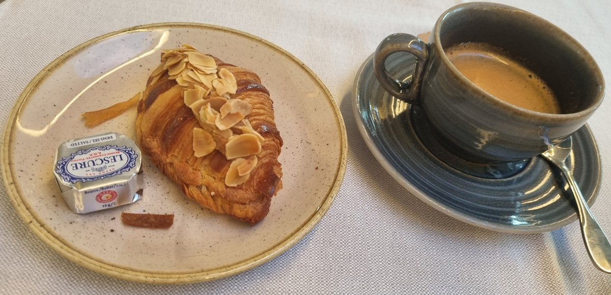В принципе, всё стандартно, прекрасный завтрак, не хватает только одного - шампанское не подают. My guilty pleasure во Франции - круассан с солёным маслом и кофе на завтрак.