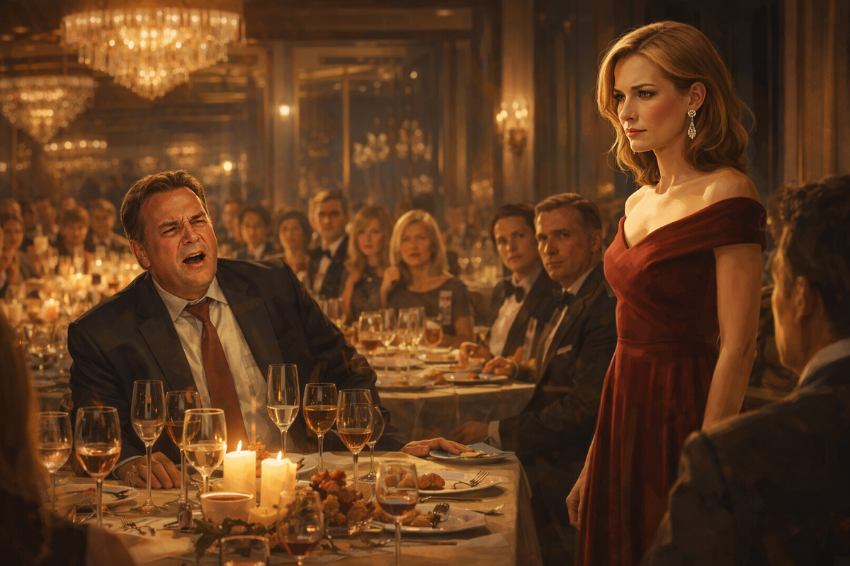 В зале на секунду воцарилась мёртвая тишина. Гости замерли с поднесёнными ко рту вилками. Кто-то поперхнулся шампанским. Женщины испуганно переглядывались.