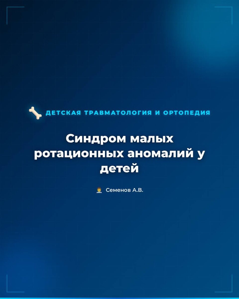#детская_ортопедия 👋 Привет, друзья! На связи Андрей Семенов. 👨⚕️ ⚠️ Синдром малых ротационных аномалий — это самая частая причина, по которой родители в панике приводят ко мне на приём здоровых детей, жалуясь, что ребёнок заворачивает стопы внутрь при ходьбе. Весна 2026 года уже наступила, мы переодеваем детей в лёгкую обувь, и на открытых ножках эти особенности походки становятся особенно заметны. 📊 По мировой статистике, с этой доброкачественной особенностью развития сталкивается до 30% всех малышей в возрасте от года до пяти лет. 💡 Важно понимать, что в абсолютном большинстве случаев это не болезнь, а физиологический этап формирования опорно-двигательного аппарата. 🔬 Откуда берется ротация внутрь и как это работает? Причина кроется во внутриутробном развитии: чтобы поместиться в животе мамы, плод находится в позе с плотно приведенными и скрученными внутрь ножками. 🦴 В итоге ребёнок рождается с антеверсией шейки бедра около 30-40 градусов (вместо взрослых 10-15 градусов) и