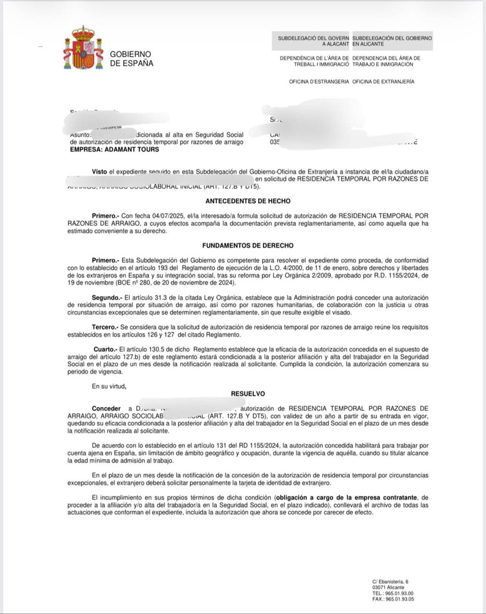 ПЯТНИЦА 13 - НЕ ВСЕГДА ЭТО ПЛОХО. Подача из нелегального статуса 04/07/25 на основании контракта на работу и более 2 лет проживания в Испании. Одобрение пришло в пятницу 13/03/2026 🤯 НИКАКИХ дозапросов как у многих аттестованных «юристов» и хесторов. Теперь нужно встать на учет в фонд соцстраха и получить долгожданую карту резиденции 🇪🇸 Поздравляем Наталью с легализацией!!! ☎️ По вопросам ВНЖ и массовой легализации обращайтесь. Она уже скоро стартует.