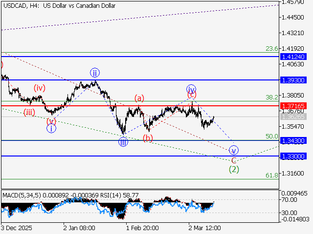 USD/CAD: Волновой анализ Эллиотта и прогноз на период с 13.03.26 по 20.03.26