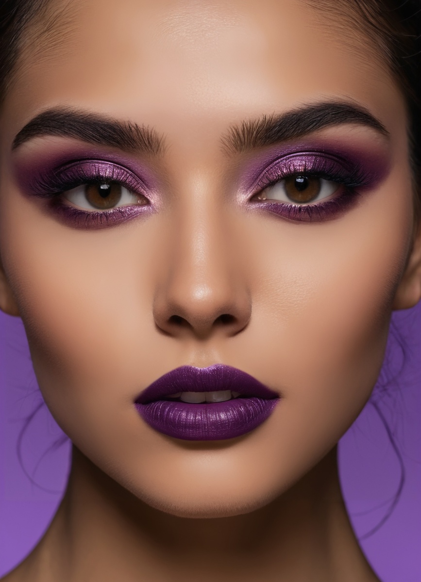 Баклажановые оттенки - это не только стильный выбор, но и мощный инструмент для создания выразительного образа. Их глубокий фиолетовый цвет прекрасно контрастирует с теплотой карих глаз, подчеркивая их уникальность. Эти оттенки прекрасно гармонируют с любыми тонами кожи, создавая эффектный и сбалансированный макияж, который легко адаптировать под различные образы - от повседневного до вечернего.