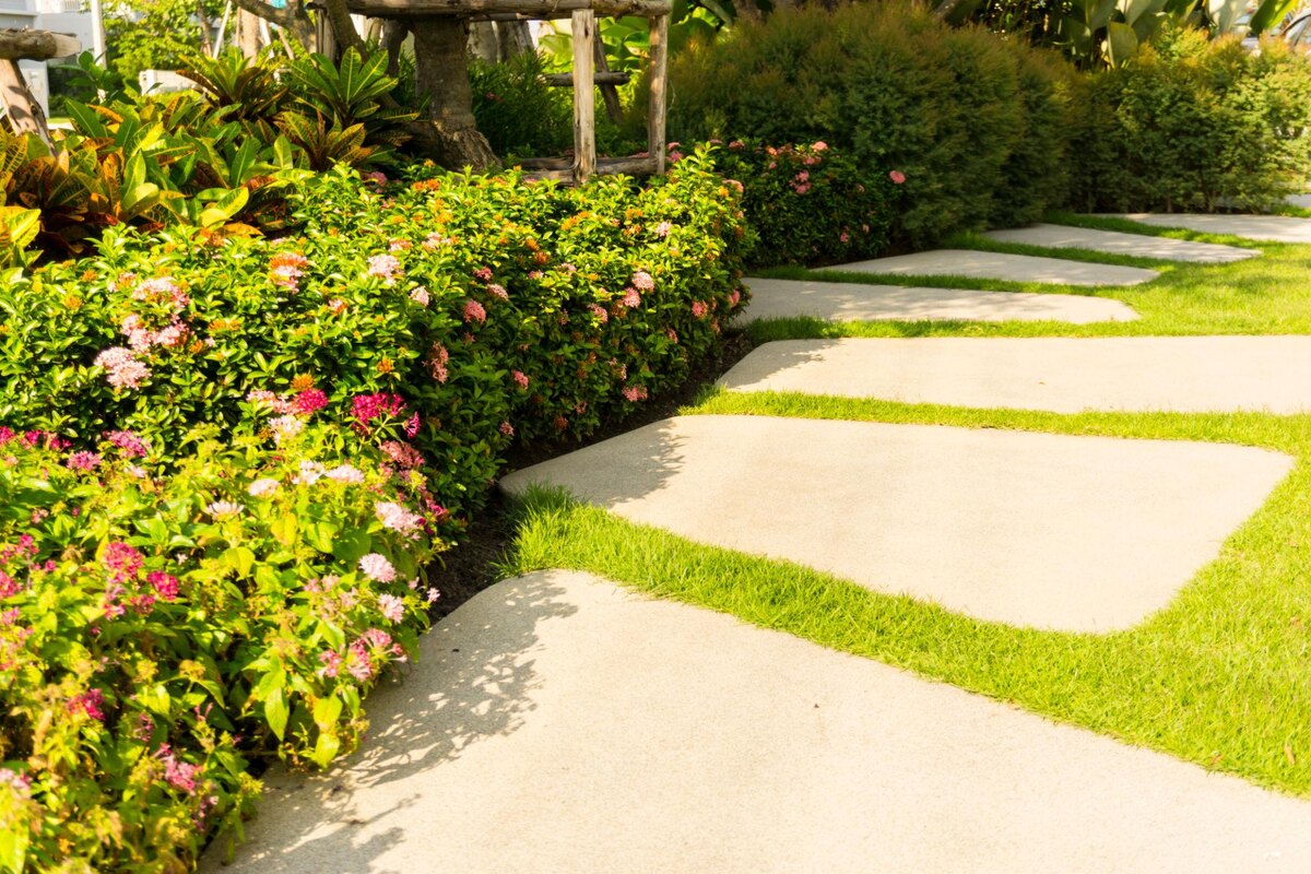 Дорожки могут быть выполнены в разных стилях — от классических прямых линий до сложных ландшафтных композиций.
