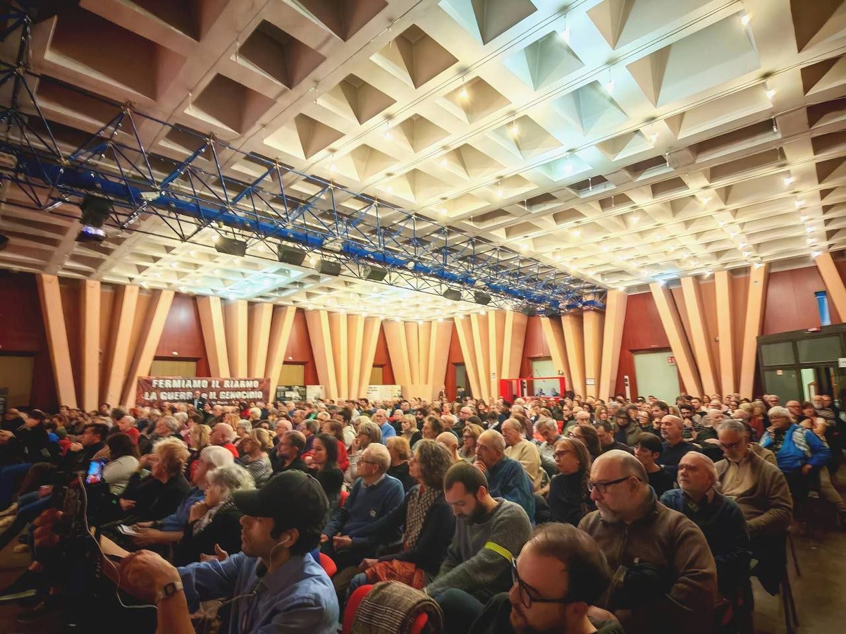 Una sala stracolma ieri a Milano per la conferenza di Angelo d'Orsi e Elena Basile "Democrazia in tempo di guerra