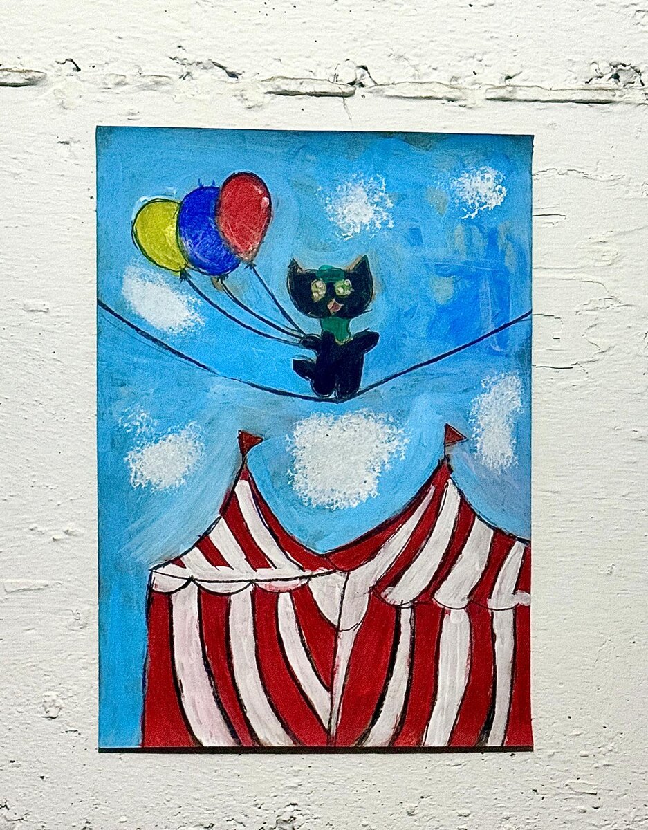 Мы поехали с Соней в изостудию, вышли из дома, дошли до остановки, получили первое оповещение и в это время пришел наш автобус. У меня был выбор вернуться в дом и спуститься в миклат или сесть в автобус и успеть спуститься в нижний город, а при необходимости зайти в миклат где-нибудь там. Я выбрала второй вариант. Водитель буквально долетел до нижнего города. От остановки до студии нам идти минут 5-7. Я решила ускориться и успеть добежать до студии до тревоги (если она будет). Пока мы ускоренно двигались в сторону изостудии, народ из магазинчиков и офисов, которые мы проходили, активно зазывал нас в свои миклаты, однако я надеялась, что мы успеем дойти до изостудии, а уже там, в случае тревоги, зайти в миклат. Ну и когда до студии оставалось метров сто пятьдесят, врубили сирену. С одной стороны я понимала, что мы успеваем добежать, с другой стороны ситуация достаточно нервная. Короче мы с Соней перешли с быстрого шага на бег в направлении студии, но нам буквально перегородили дорогу какие-то мужчины, которые курили рядом с входом в какой-то офис и заставили нас пойти к ним в миклат, на мои заверения, что нам тут близко, мужики не реагировали. В миклате мы посидели 10 минут, судя по звукам сбили где-то совсем рядом. (в нескольких км от нас Батей зикук и по нему все время целятся). В итоге, с небольшим опозданием, но на занятие мы все-таки попали. А рисунок, который нарисовала Соня, мы повесили в нашем домашнем миклате.