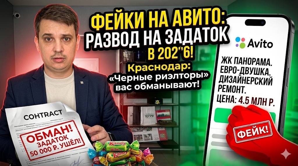 📸 Видите на Авито шикарную евродвушку с дизайнерским ремонтом в ЖК «Панорама» за 4,5 миллиона рублей? Закрывайте вкладку. Вас пытаются обмануть. Я профессионально занимаюсь недвижимостью в Краснодаре и каждый день слышу истории о том, как люди теряют время, нервы, а иногда и крупные суммы, клюнув на «сладкие» объявления. В 2026 году схемы стали тоньше, но цель одна — поймать вас на крючок. Как работают «фонари» и фейки?