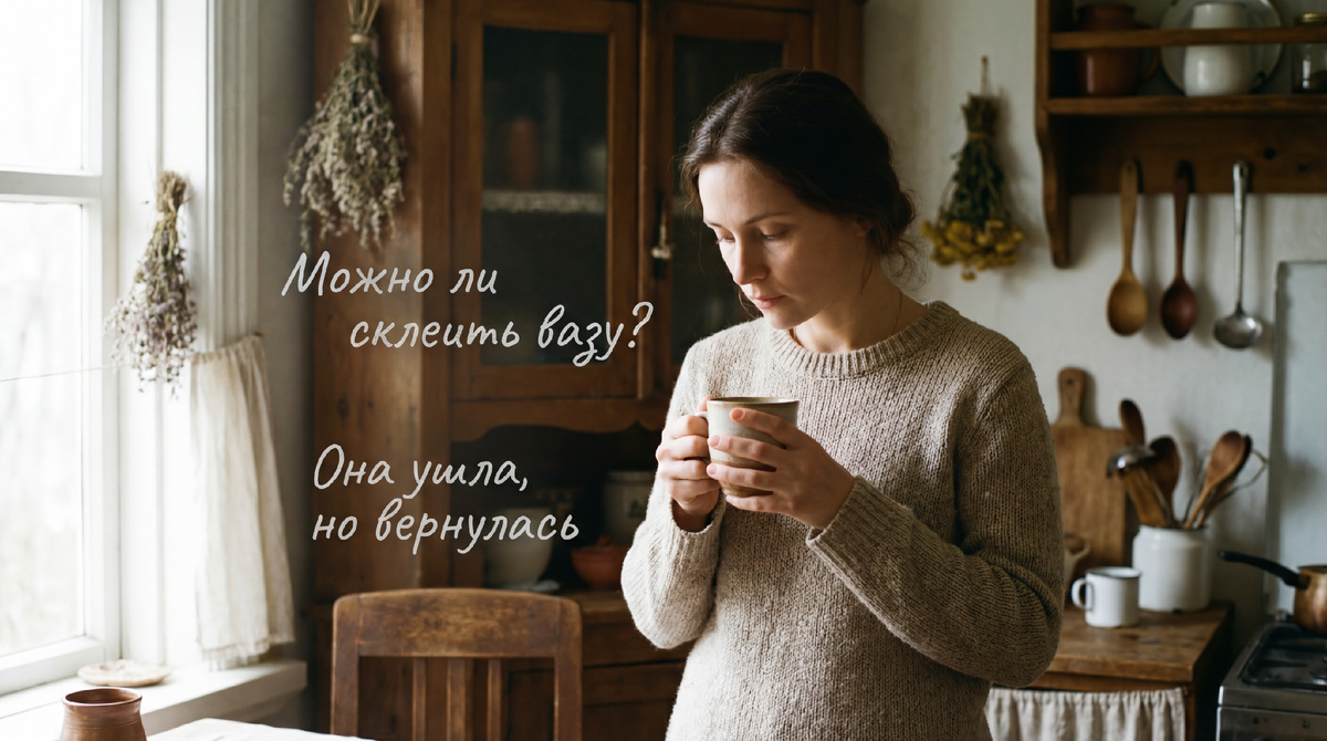 Долго сидели в темноте, держась за руки. За окном шумел город, где-то лаяла собака, а в их маленькой кухне начиналась новая жизнь. Хрупкая, как та свадебная ваза. Которую они попробуют склеить.