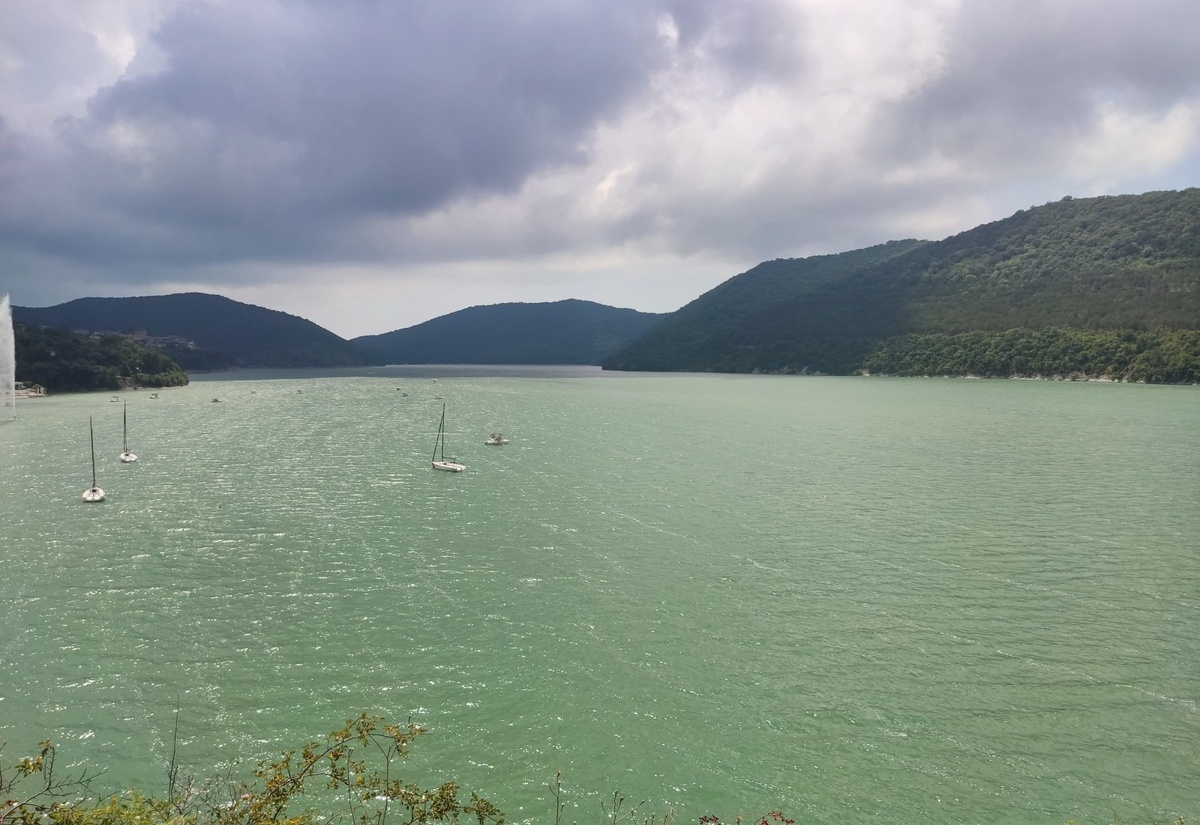 Озеро Абрау – самое крупное пресноводное озеро Черноморского побережья России. Его площадь составляет около 1,7 квадратных километра, глубина достигает 8 метров. Водоем лежит в глубокой горной чаше на высоте 84 метра над уровнем моря и со всех сторон укрыт горами, густыми лесами и живописными виноградниками. Именно такое уникальное расположение создает атмосферу настоящего рая для отдыха и вдохновения. Тишина, покой и необыкновенная природа. Вода в озере чистая, насыщенная кислородом – идеальные условия для развития флоры и фауны. Там водятся раки, сазан, тарань, амур, лещ, толстолобик и другие виды рыб.