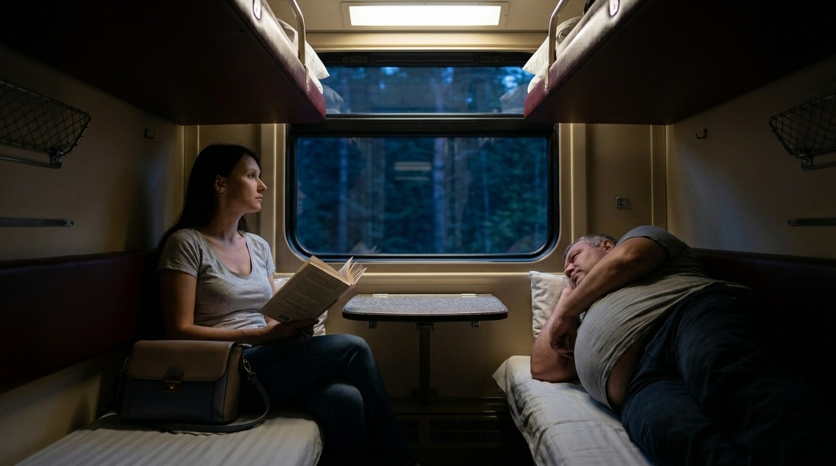 В купе были ещё двое — пожилая женщина на верхней полке напротив и парень примерно моего возраста у окна. Женщина отвела взгляд. Парень пожал плечами — мол, не моё дело.