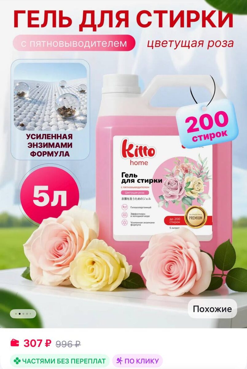 KITTO Гель для стирки с ПЯТНОВЫВОДИТЕЛЕМ 5 литров автомат
