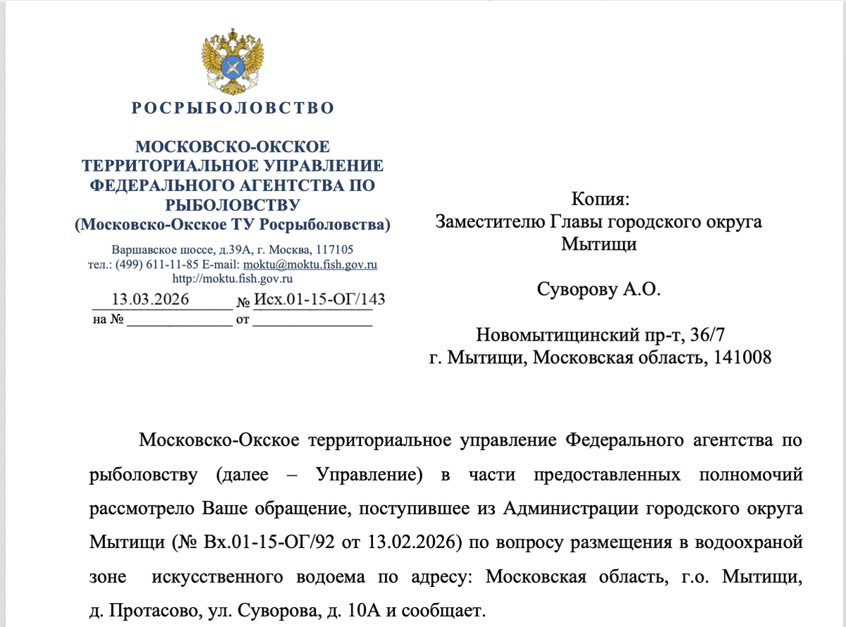 Проверка, организованная АНО "Охрана вод и лесов" по пруду Долиной в д. Протасово под Мытищами, откладывается