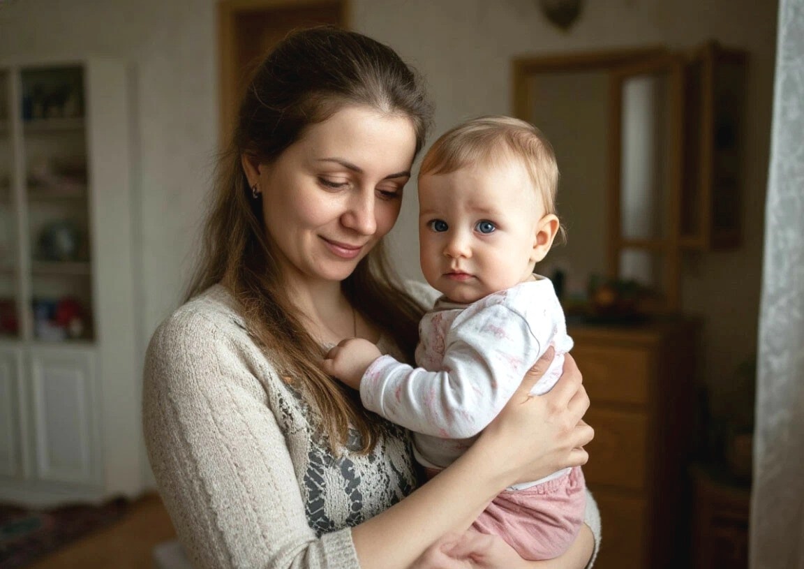 Света присела на корточки и протянула руки к дочке. Малышка стояла, держась за диван, и недоверчиво смотрела на маму. Потом решительно оторвала ладошки от опоры, качнулась — и сделала первый самостоятельный шаг.